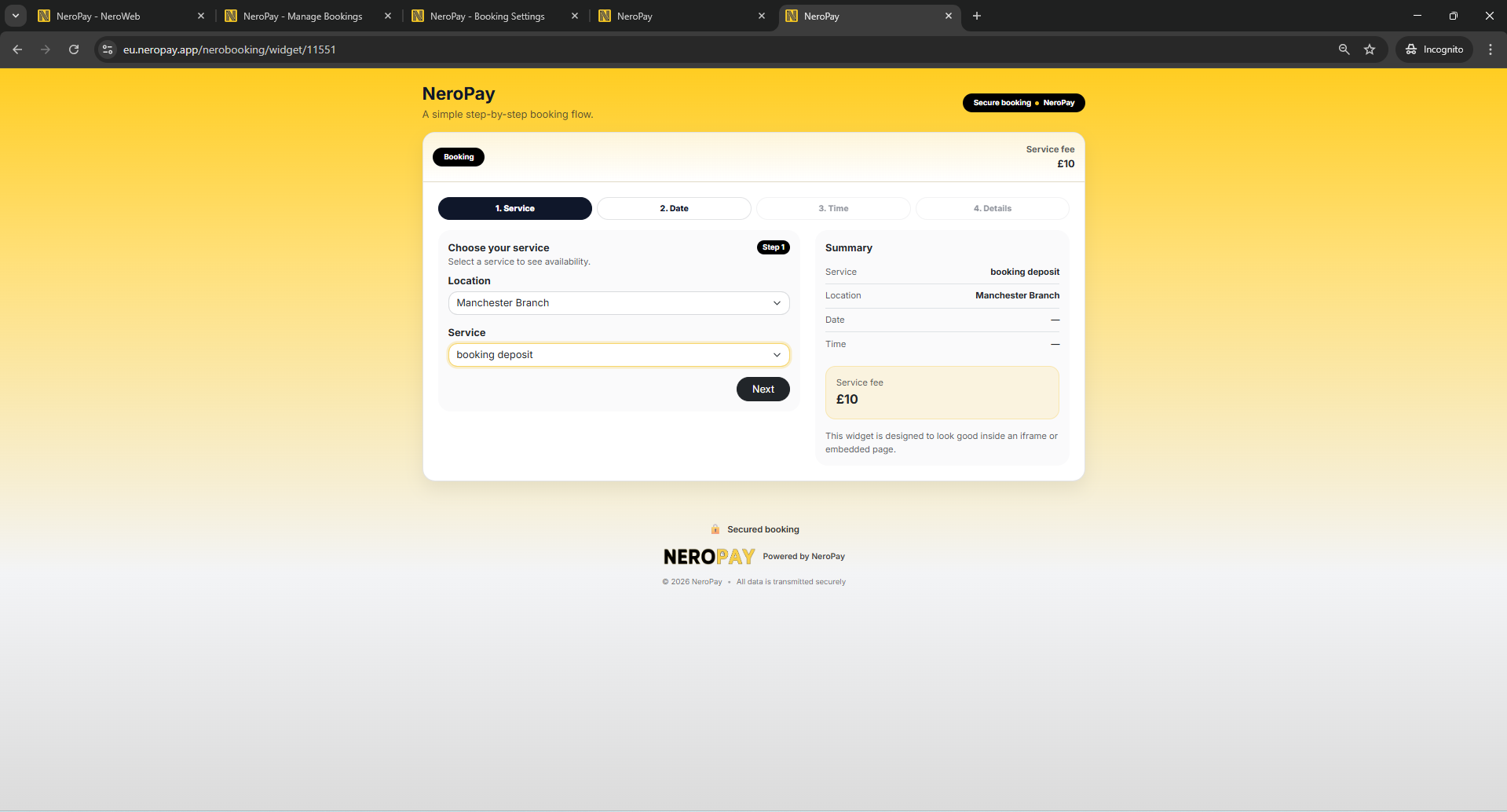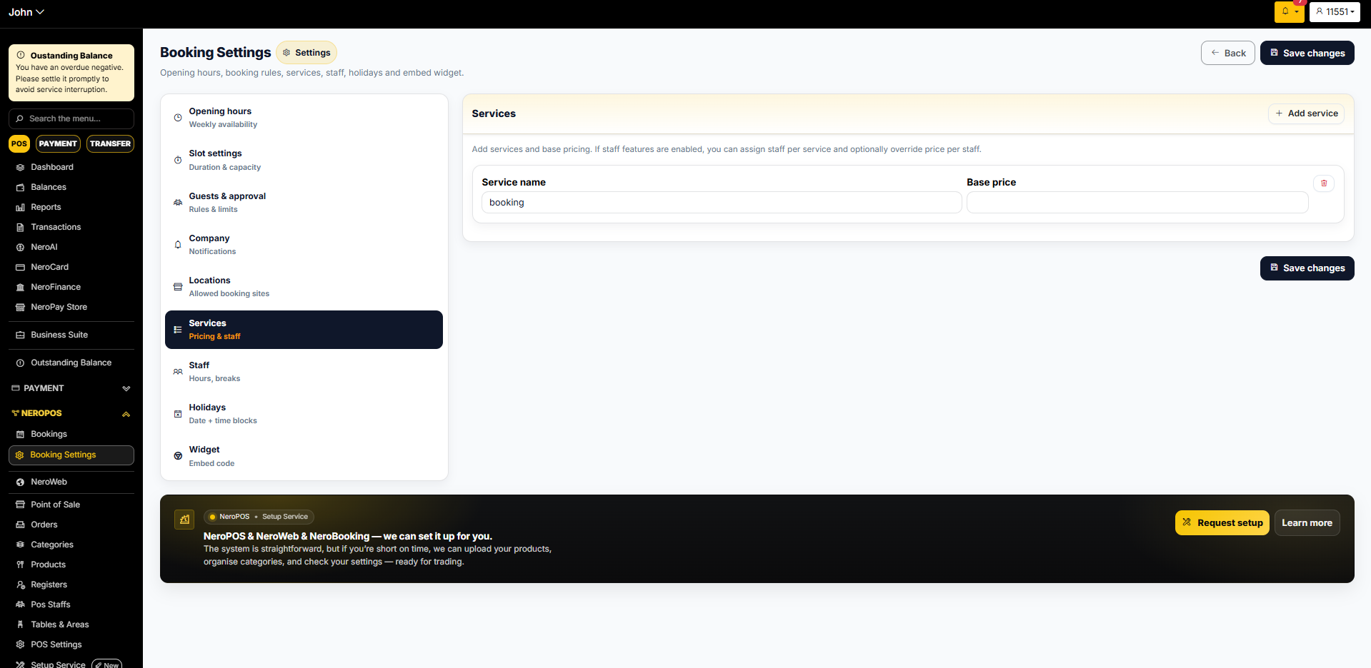 Set up the service name you would like to have, for example, booking deposit and add a price