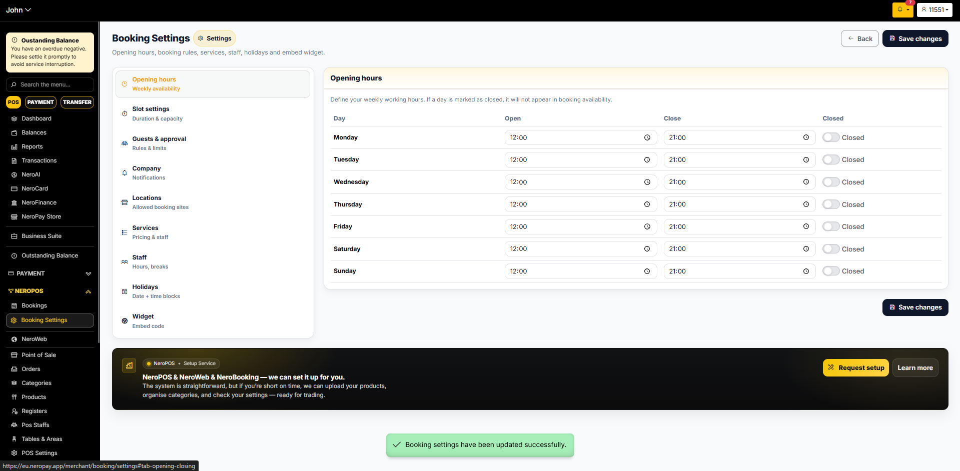 You can adjust your booking schedule in Bookind Setting -> Opening hours