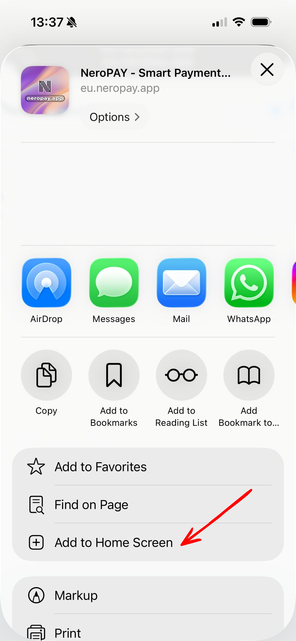 Here’s the step-by-step process to turn the NeroPay browser page into an “app” (iPhone / iPad Safari — Add to Home Screen):