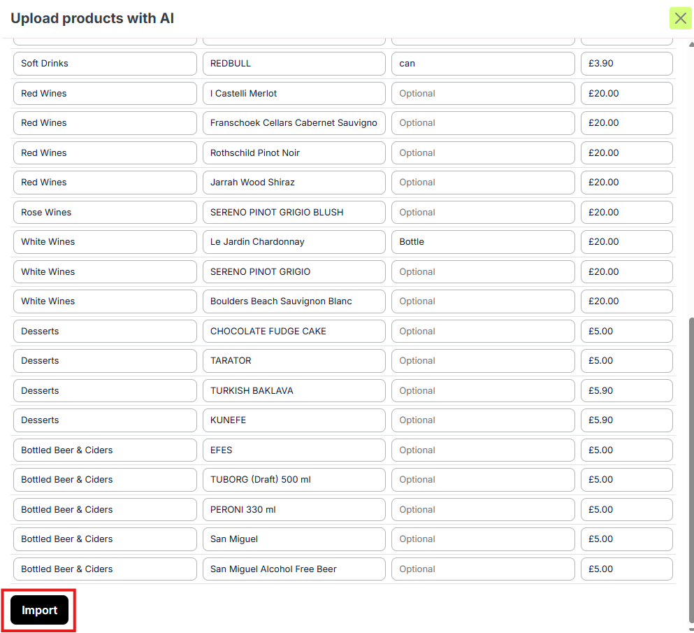 - Verify Information: Check that the categories and prices have been captured correctly.
