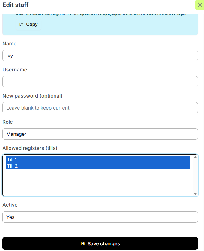 - Assign Till: Select the specific Till this staff member is authorised to use.