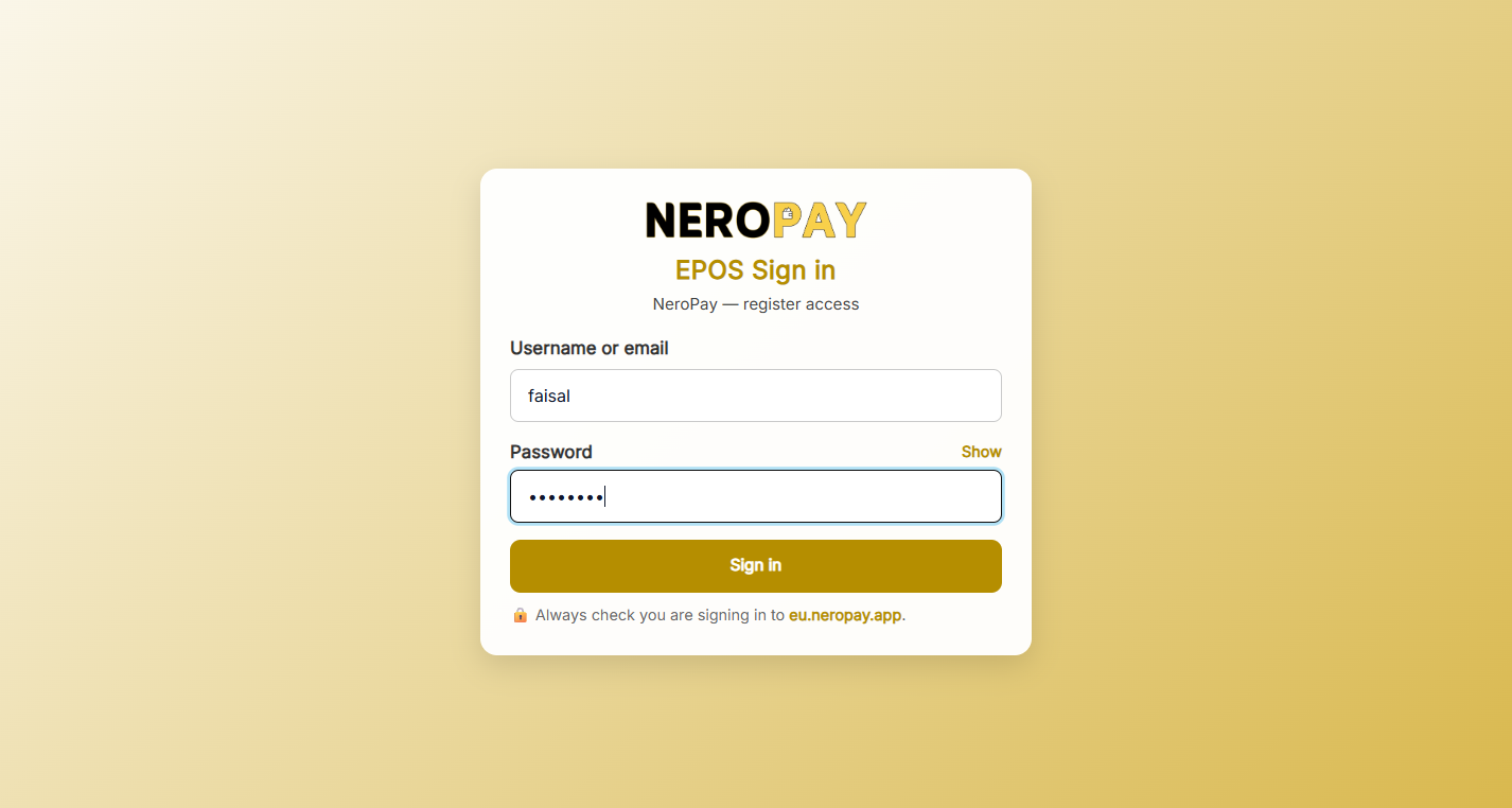 Set up secure access for your in-store team. All information is managed within your NeroPay account, so you can create a dedicated login for staff members. This ensures that sensitive data—such as financial reports, transaction history, and transfer records—remains protected.