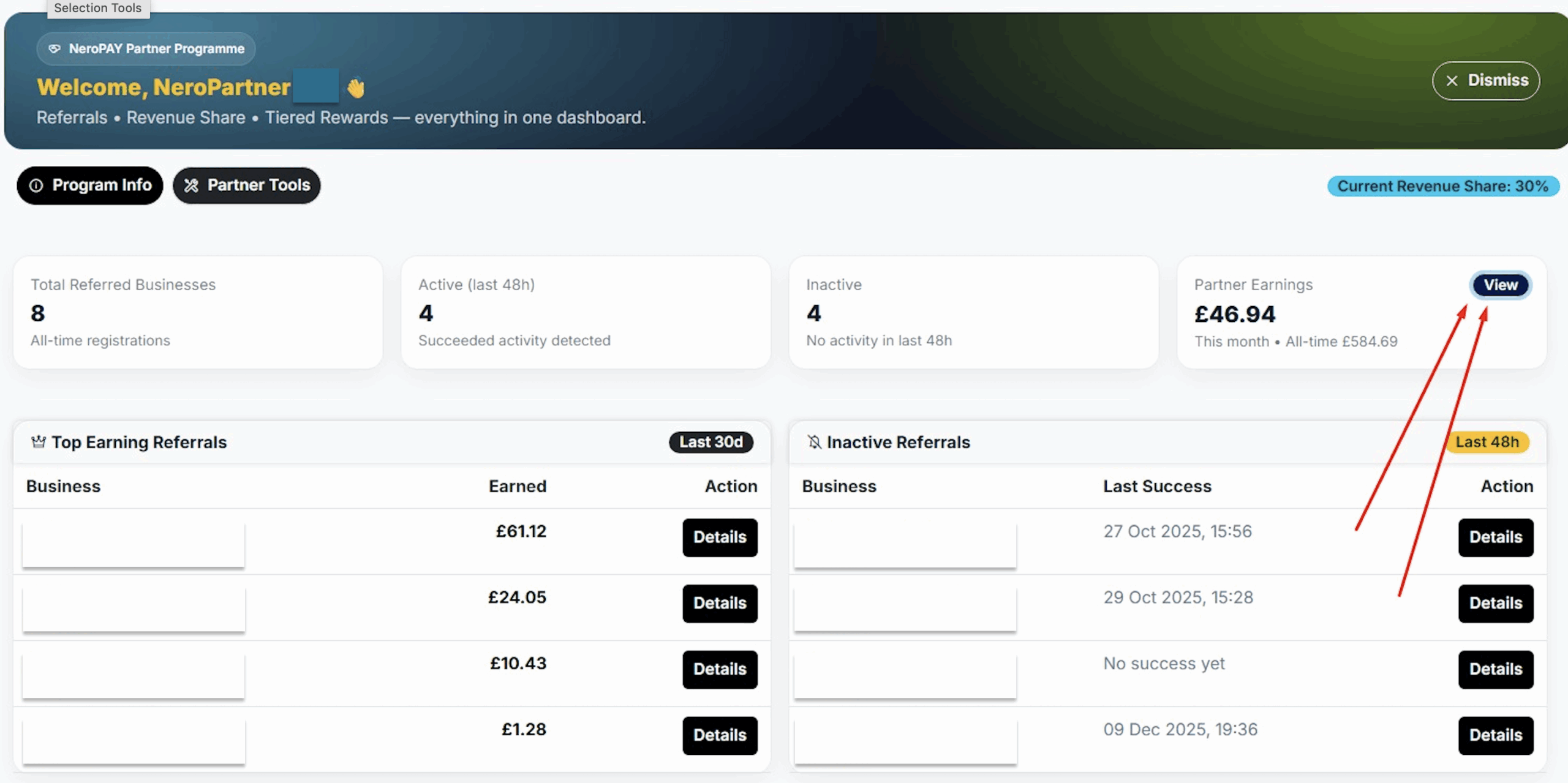 This document explains how to read the Partner Dashboard and understand earnings, statuses, and metrics.