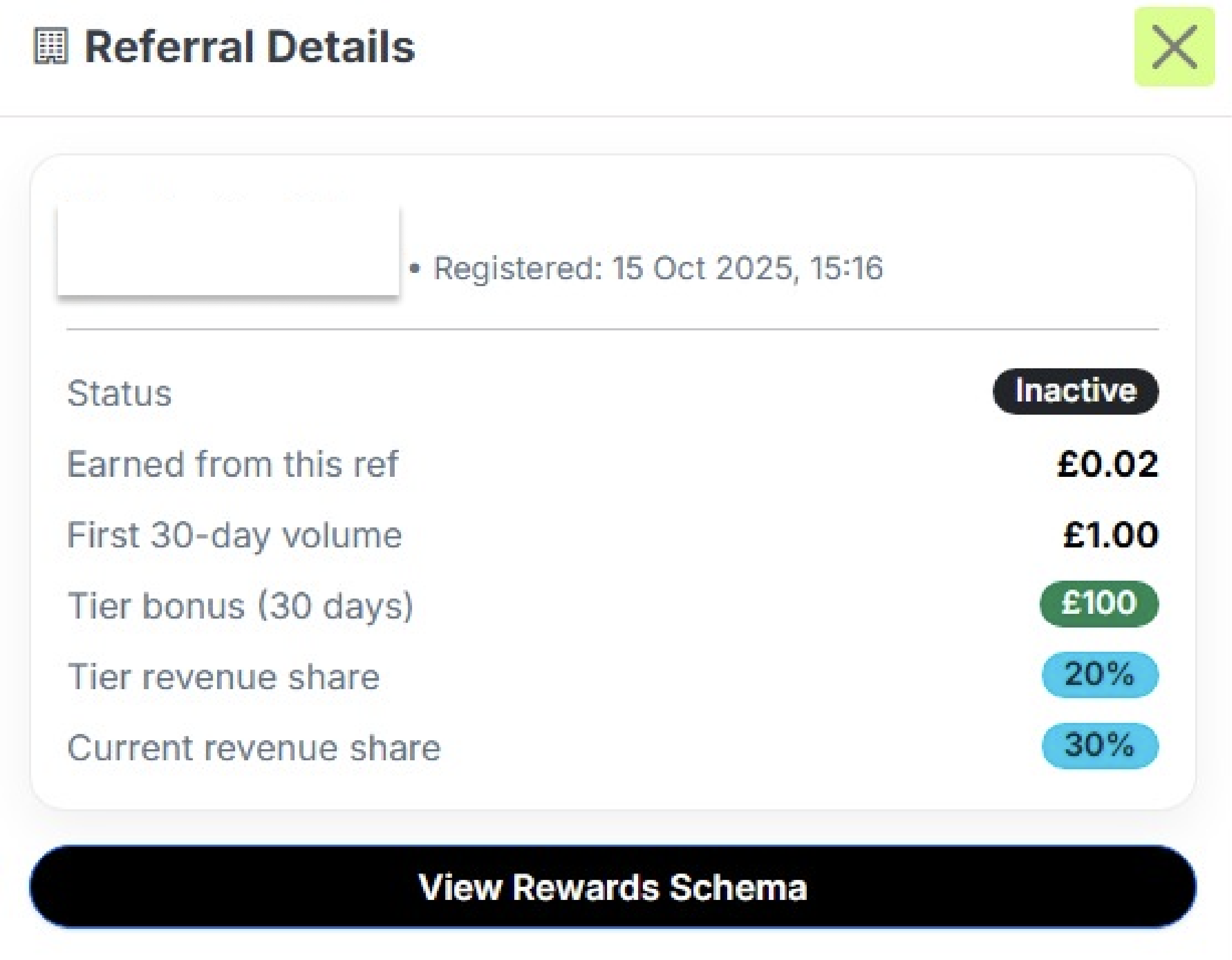 - Based on the number of active merchants at the time the referral was added